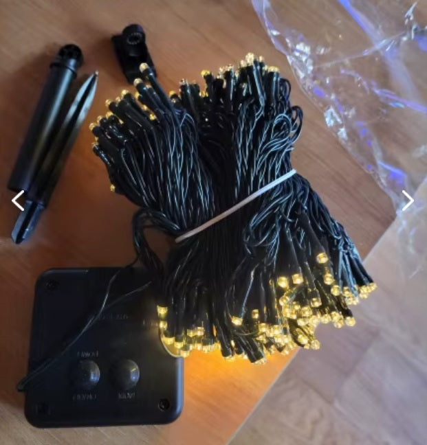 Estas Luces Solares Navideñas de 20 m y 170 LED se cargan con el sol durante el día y se encienden automáticamente al anochecer.