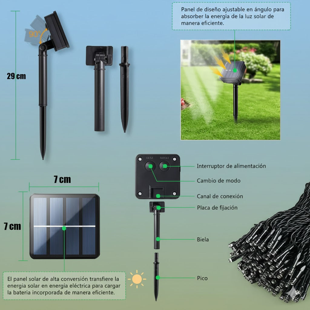 ✨Encendido inteligente:Gracias a su sensor de luz, se activa al anochecer sin intervención manual.